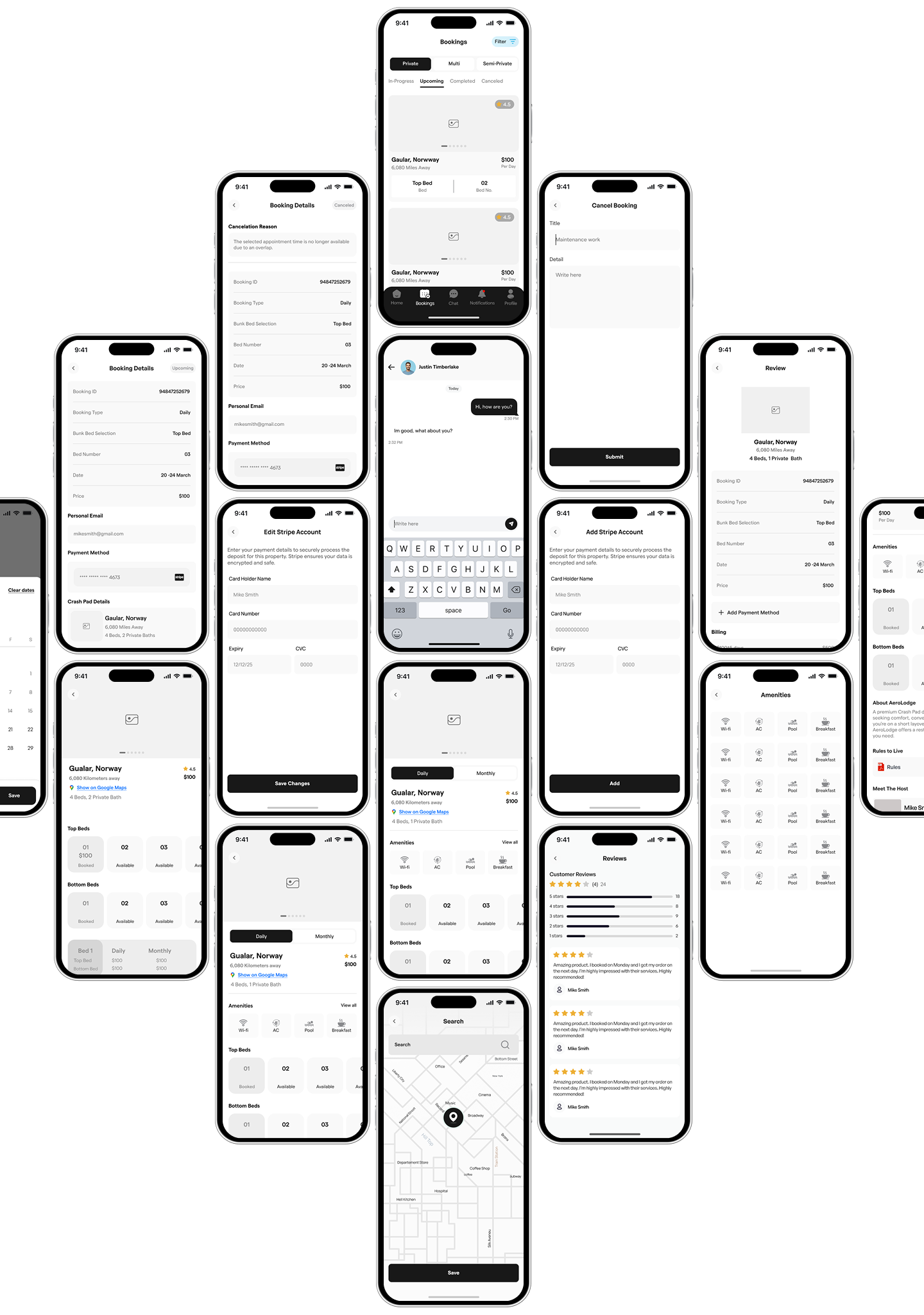 When you use CrewRoomz, everything is designed to get you moving quickly and effortlessly. Our low-fidelity wireframes mapped how you search and filter, book stays, explore property details, and even manage listings or admin reviews. By sketching it all out first, our team at a top Web App Development Company ensured the platform’s structure is solid, intuitive, and user-friendly. These wireframes are a key step in building smart, efficient web-based solutions just for you.