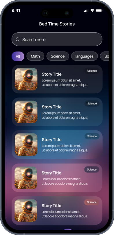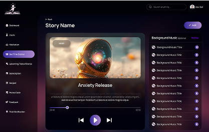 It’s a Spotify-style mobile app that is built for children’s emotional wellness. We created a space for the kids and filled it with meditation music, fun lip-sync activities, and creator-driven bedtime stories. In contrast, offering proper parental control makes it manageable and to protect children’s mental well-being.