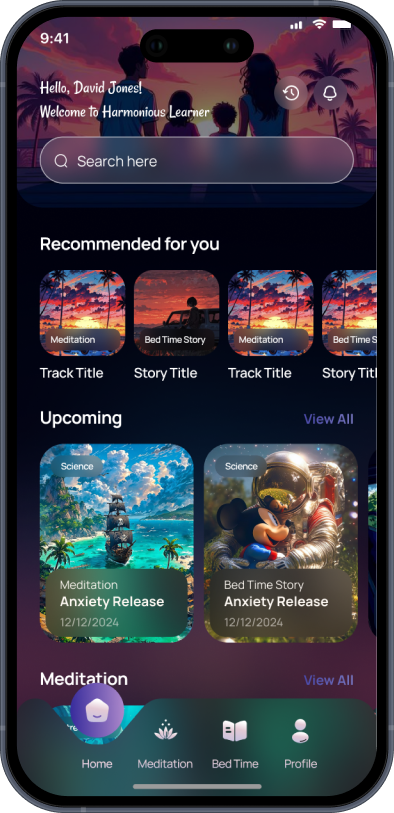 Harmonious Learning successfully delivered a smooth, kid-friendly audio environment supported by clear and reliable parent controls. The redesigned experience made navigation effortless for children, helping them explore music, meditation, and stories with confidence. Lip-sync quickly emerged as one of the most engaging features, offering playful expression without adding complexity. Community-driven bedtime stories inspired creativity and participation, giving families a richer, more personal content library. Parents responded positively to the transparent activity visibility, easy profile setup, and the sense of safety built into every flow.